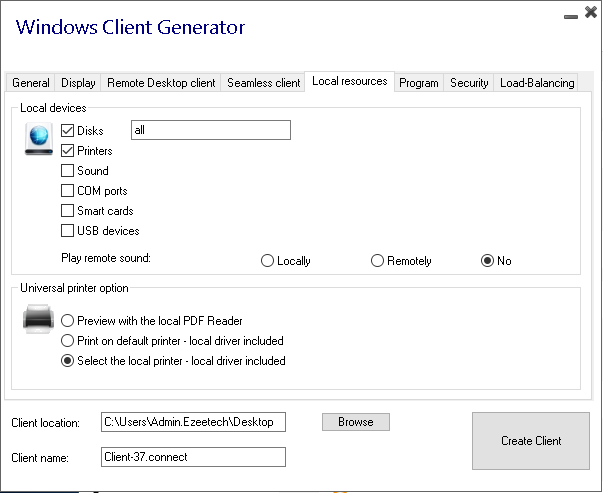 Select the location where you want to save the Icon & give the Client Name then click on Create Client