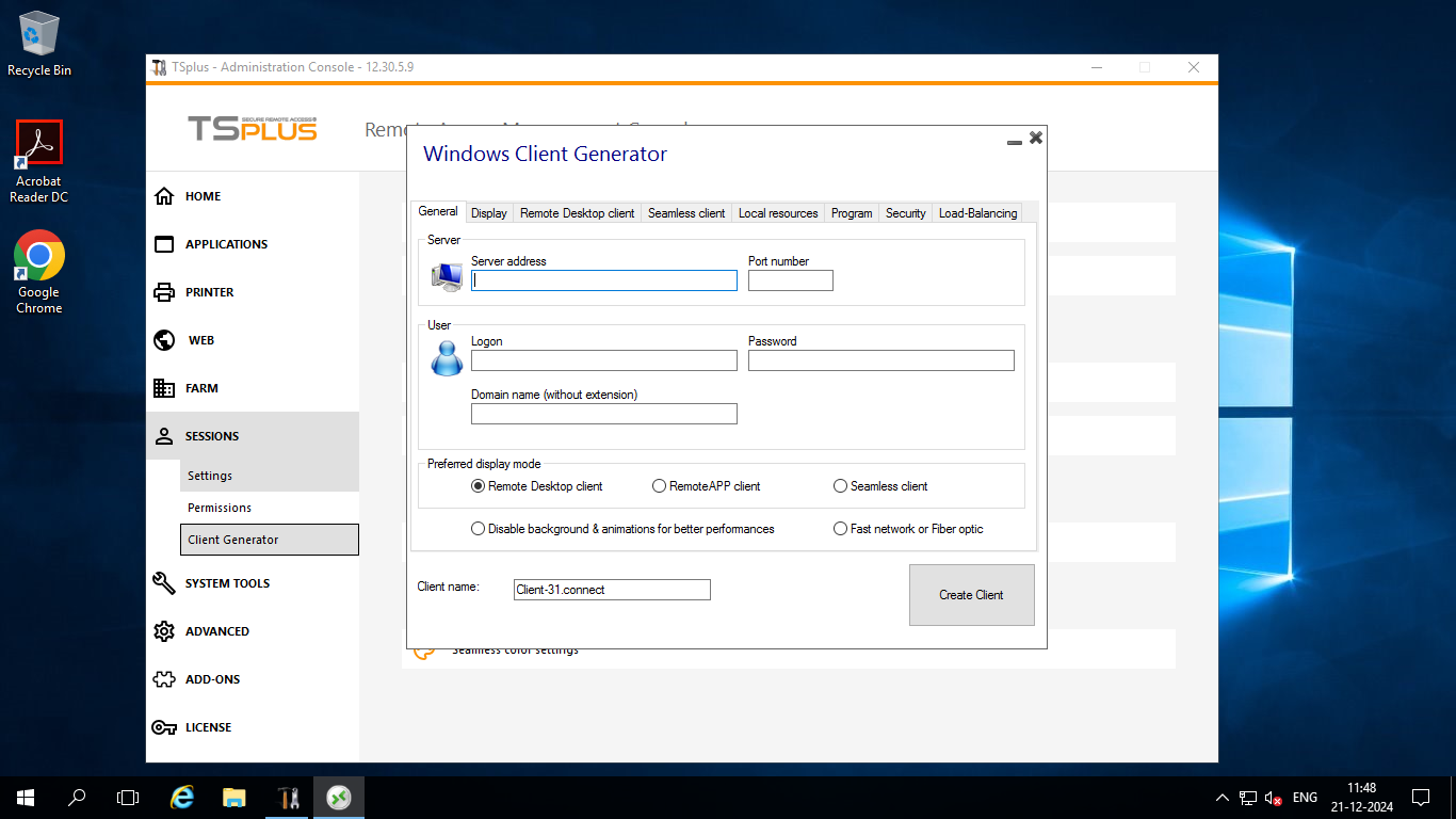 Open TSPlus (There is a common password to open the software) [ 0135790 ]
